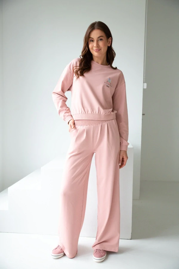 Široké tepláky v módní starorůžové barvě jsou ideální volbou pro ženy, které si cení pohodlí, stylu a vysoké kvality. Kalhoty jsou vyrobeny ze strečové teplákoviny s příměsí bavlny a elastanu, dokonale se přizpůsobí postavě a udrží si svůj tvar i po mnoha vypráních a intenzivním používání. Materiál je příjemný na dotek, nevyhrnuje se na kolenou a zaručuje dlouhotrvající pohodlí při nošení.